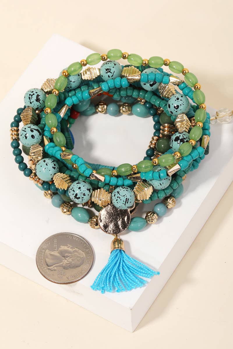 Assorted Turquoise Beaded Tassel Bracelet Set